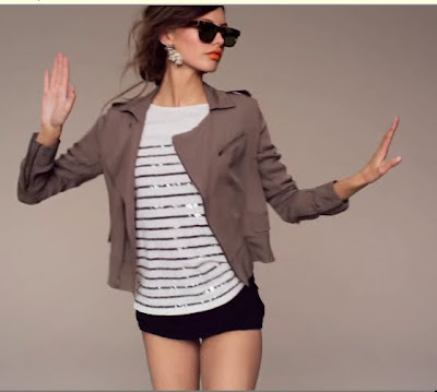 J. Crew is undeniably on fire lately! I am continually inspired by well "everything" but today it was by the adorable video on their site! {i need to download that french song}. I bought this shirt a few weeks ago..and love how they mix it up.{imagine having those legs-you could wear anything} I can't get enough of stripes lately {i'm sure this will pass}.
